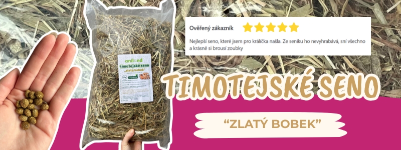 Je vhodné králíkovi nabídnout více druhů a značek sena, často je velmi oblíbené seno bojínkové. Seno mu nabídněte v seníku, volně na zemi, v hrabací krabici, v hračkách apod. Vhodné je seno také posypat různými bylinkami, můžeme podávat i RodiCare Appetit na podporu chuti k jídlu, případně RodiCare Akut nebo Bio-Lapis na podporu trávení.